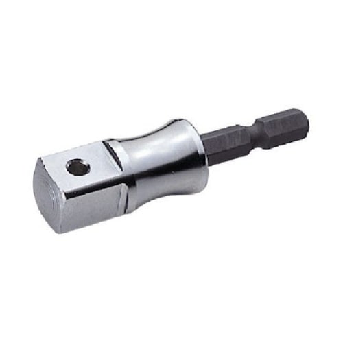 六角シャンク圧入により、耐久性抜群です。インパクトレンチ用ソケットを電動ドリルで使用可能にする先端工具です。インパクト用ソケットを安全に接続するため、付属ピンを連結する穴付です。 |
