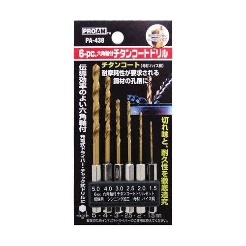使用頻度の高いサイズの六角軸付ドリルセット。ハイス鋼ドリル先端のエッジに大きな切れ刃を付け、良く喰いつき切削効率に優れるシンニング加工仕様。電動効率の高い六角軸が作業効率を向上します。 |
