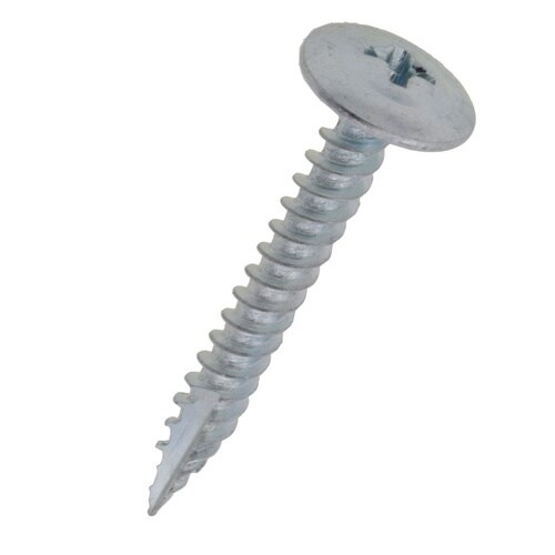 材質は鉄で、ユニクロめっき。大きな座面が金具をしっかり固定します。下穴なしでねじ込めます。先端が鋭いVカットになっており、木割れを防ぎます。ドライバー2番。比較的柔かい木に適している。 |