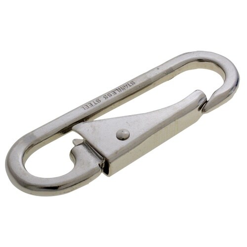 材質はステンレスでサビにくい。ワンタッチで取付取り外しができるチェーン・ロープ連結金具。駐車場や入場制限用のステンレスチェーンの連結などに適しています。 |