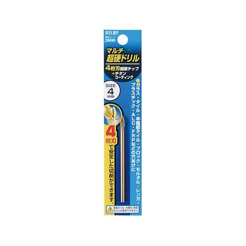 イチネンミツトモ 4枚刃マルチ超硬ドリル 4mm 超硬チップ+チタンコート 26690 26690 1本 A06W-9497