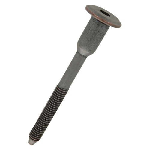 材質は鉄でブロンズめっき。さら状の頭部により、表面を保護し安定した角度が得られます。M6のオニメナットA,Eタイプと組み合わせ、特に高級木工家具の組み立てに使用します。