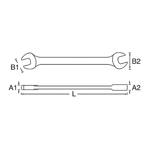サイズ(mm):14×17 | 全長(L;mm):200 | スパナ部幅(B1・B2;mm):28.5・35.0 | スパナ部厚み(A1・A2;mm)…