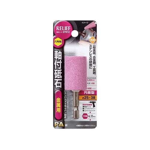 イチネンミツトモ 六角軸 軸付砥石 金属用(PA) 円筒型 φ25×38mm 27812 27812 1個 A06X-0918