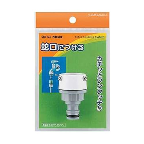 カチッとワンタッチ。流路内径9ミリ、先端にネジのない呼13の水栓3にビスで固定、対応吐水口サイズ15ー20ミリ、リサールカップリングシステムは屋外散水以外の用途に使用しないでください。 |