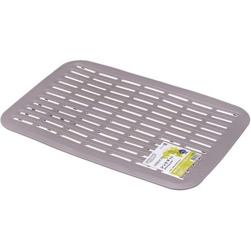 シンクの底面に置いて使うシンクマットです。食器を落とした衝撃や傷からシンクを守ってくれます。穴の開いた形状なので水切れが良く、裏面には脚があるので水はけも良いです。 |