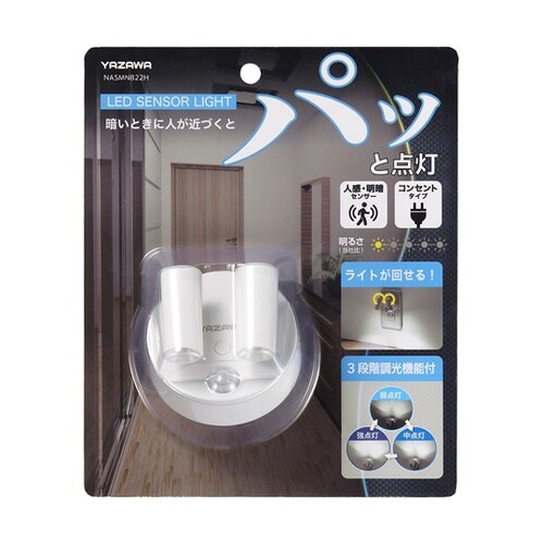 ライトの向きを変えることができます。調光機能で明るさを3段階調整できます。暗い時にセンサーが人の動きを検知すると自動で点灯します。 |