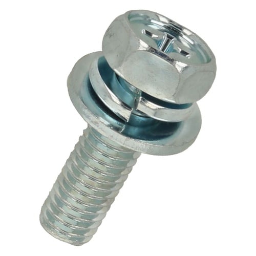 六角アプセットボルトにばね座金と平座金が組込まれており脱落しません。組込み式なので作業効率が向上します。締付け工具はボックスレンチ、メガネレンチ、十字ドライバーが適切です。 |
