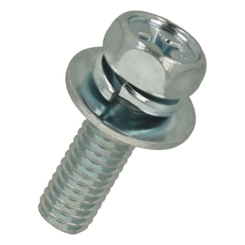 六角アプセットボルトにばね座金と平座金が組込まれており脱落しません。組込み式なので作業効率が向上します。締付け工具はボックスレンチ、メガネレンチ、十字ドライバーが適切です。
