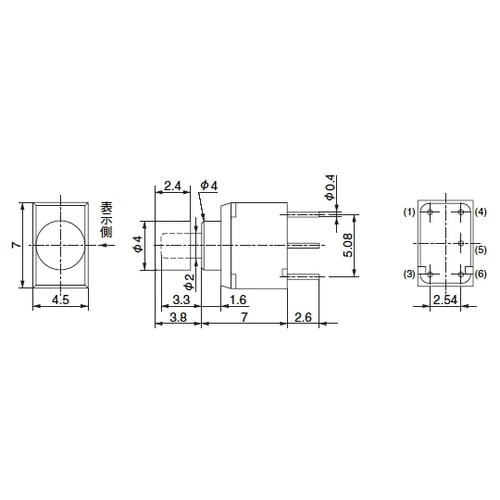 極数:単極双投 | 動作機能:ON−(ON) | 本体部カラー:シルバー | 操作部形状:円形 | 操作部カラー:別売 | 操作部表示:なし | 端子…