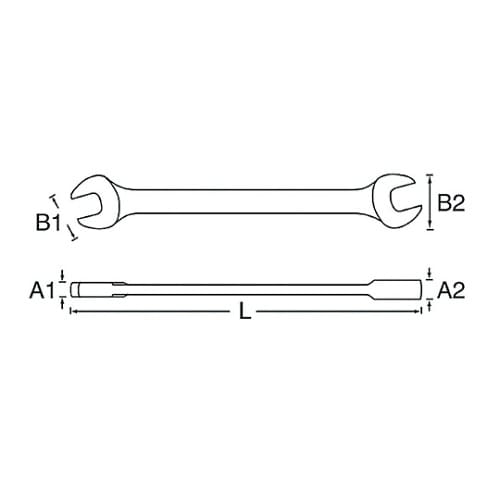 サイズ(mm):12×14 | 全長(L;mm):186 | スパナ部幅(B1・B2;mm):24.5・28.5 | スパナ部厚み(A1・A2;mm)…