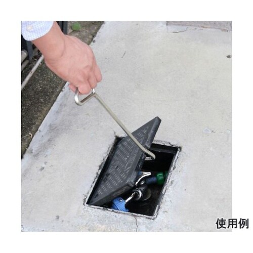側溝のフタ、水道栓のフタ、マンホールを開けられます。力が入りやすく持ち上げやすい形状で仕上げました。本体には頑丈な炭素工具鋼を使用しサビに強いニッケルメッキ仕上げ。 |