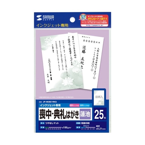 喪中はがきや典礼など行事のお知らせを、必要なときに必要な枚数だけ印刷できるはがきです。表面には落ち着いた雰囲気の蓮の花のデザインを入れております。 |