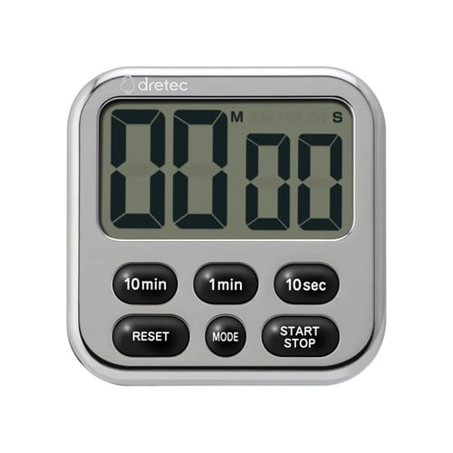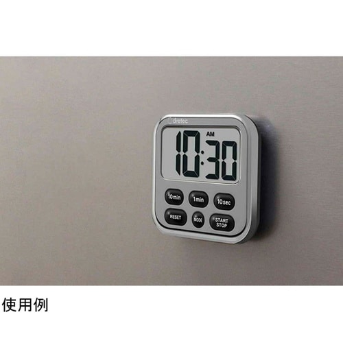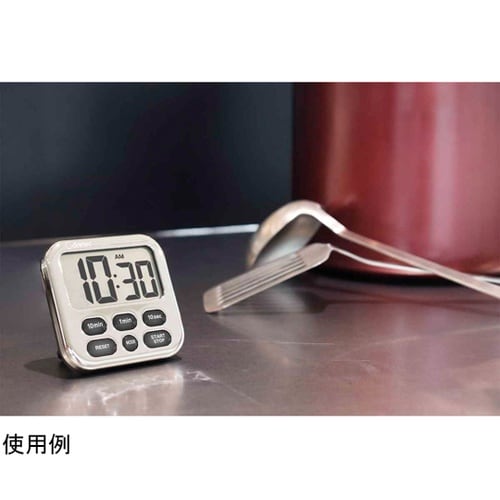 時計機能が付いて大画面で見やすいキッチンタイマーです。タイマーを使用しない時はモードボタンで時計表示にできます。カウントアップ・カウントダウン・リピート機能があります。 |