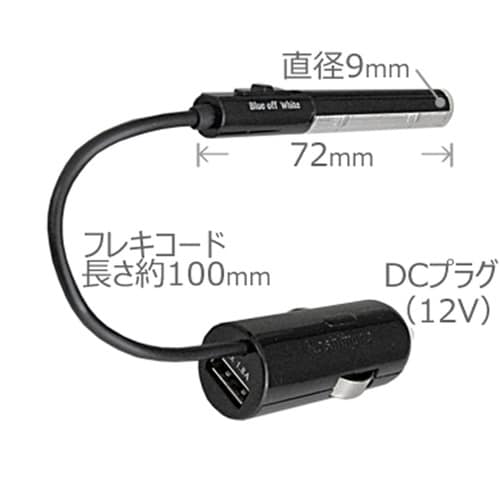 充電などに便利なUSBポート付フレキイルミ。ホワイトLED3灯と、先端がブルーLED1灯のスポットライトをスライドスイッチで切り替えられます。自由自在に角度調整可能な10cmのフレキシブルコード。 |