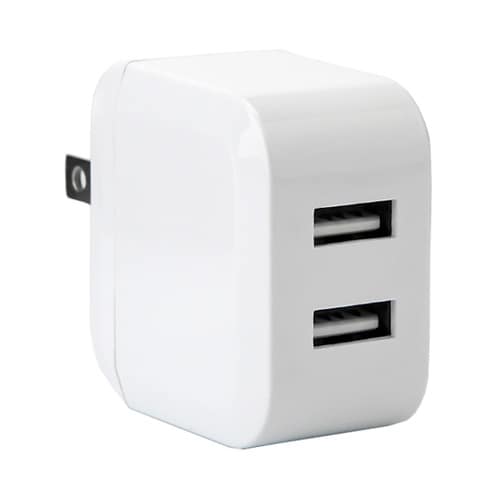 スマホなどに充電できるType−A、2ポートを装備したUSB充電アダプターです。お持ちのアダプターを紛失した際の予備としてもオススメです。プラグは折りたたみ式でスペース節約が可能です。 |
