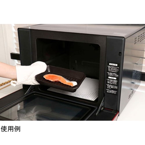 電子レンジで温めるだけで、フライパンのような焼き目がつけられます。陶器の遠赤外線効果でこんがり&ふっくら仕上がります。オーブン、魚焼きグリルでもお使いいただけます。余分な油を落とせる波型プレートです。 |