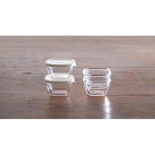 食材の保存に便利な耐熱ガラス製のフタ付ミニ小鉢4個セットです。耐熱ガラスなのでにおい移りしにくく、中身がすぐ分かり食材を小分け保存するのにちょうどいいサイズです。 |