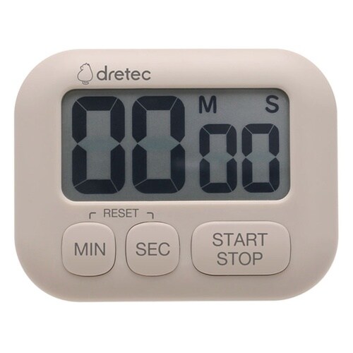 大きい画面と太い文字で表示が見やすいキッチンタイマーです。カウントアップ機能、カウントダウン機能、リピート機能を搭載しています。大きいボタンで押しやすく、シンプルな操作でタイマーをセットできます。 |