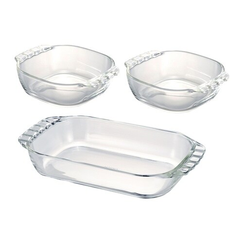 ニオイや色移りがしにくい、耐熱ガラス製のトースター皿です。3個(400mL×2個、900mL×1個)入りです。日常使いのお皿としても活躍します。 |