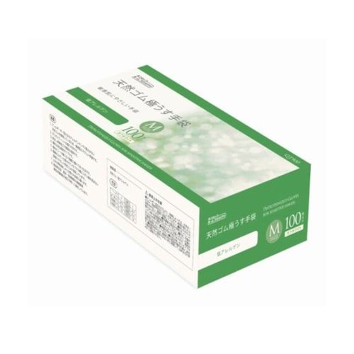 左右両用タイプ(100枚入)の使い捨て手袋です。アレルギーの一因となるアレルゲンタンパク質の少ない天然ゴムを使用しているため、敏感肌にやさしい手袋です。粉なし特殊加工で着脱し易いです。 |