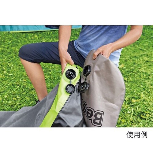 付属のポンプ袋が枕にもなる 快適エアーベッド屋外、室内を問わず寝心地の良いベッド。電源が不要で、1分で設置可能。ベッドを膨らませた後は収納袋が抱き枕に早変わり。表面は起毛加工で柔らかな肌触り。 |