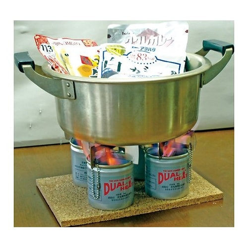 災害時の調理、暖房の熱源に 大量貯蔵や空輸も可能な保存燃料※なべ・レトルト食品はついていません。 |