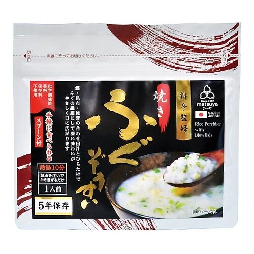 料亭監修のもと 素材に焼きを加えた本格ぞうすい化学調味料、香料、保存料不使用の無添加雑炊。ふぐの深い味わいと鮭・昆布などの旨味が広がります。