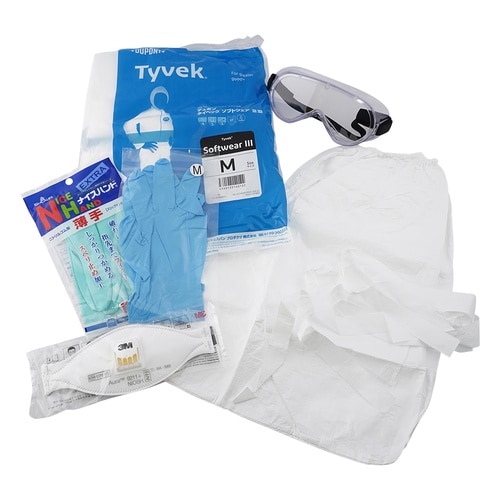 ウィルス・バクテリアなどの微細病原体の感染から人体を保護するためのセットです。防護に必要な資材をひとつのセットにし、非常時などに利用しやすいパッケージになっています。 |
