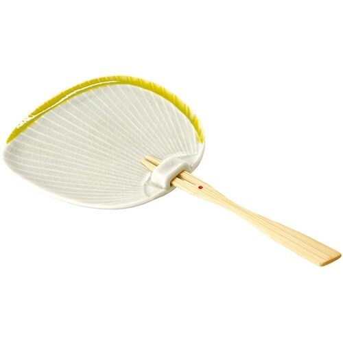 うちわの柄の部分が竹フォークになっています。夏のお膳に涼しさを演出します。甘味、デザート皿に適しています。