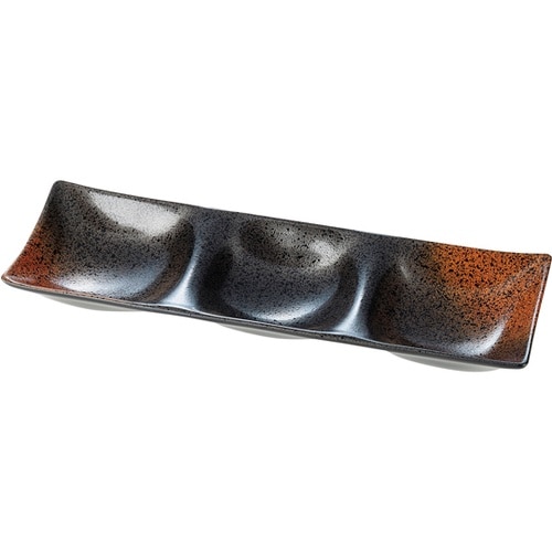 26.2cm 3点薬味皿 焼き締め裏黒塗