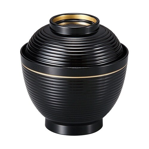 福井クラフト 耐熱3.3寸 玉子千筋椀 黒高台内金 内黒 37001530 37001530 1個 A06Y-6595