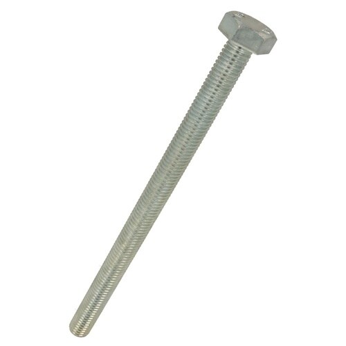 六角形状の頭部があり、胴の全体にねじが切ってあります。材質は鋼で耐食性向上のため、ユニクロめっき(薄青っぽい色合い)がしてあります。機械類の位置調整、締結用ねじです。生地に比べ耐食性があります。 |