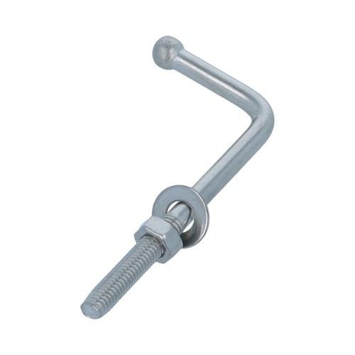 材質がステンレスでサビにくい。壁などに下穴を開けナットでフックを固定し、物を吊す時に使用。