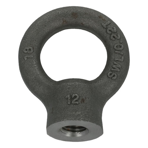 吊り下げ用のリングを持ったナットです。重量物の吊り上げに用います。材質は鋼でめっきはしてありません。モーター、配電盤、工作機械などの吊上げ時に使用。 垂直吊りのほか、45度吊りの方法もあります。 |