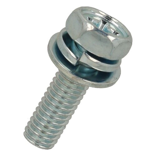 六角アプセットボルトにばね座金と平座金が組込まれており脱落しません。組込み式なので作業効率が向上します。締付け工具はボックスレンチ、メガネレンチ、十字ドライバーが適切です。 |