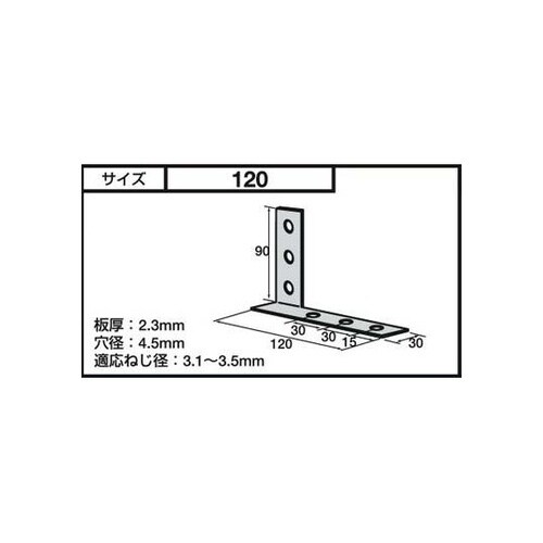サイズ:120 | 板厚:2.3mm | 穴径:4.5mm | 適応ねじ径:3.1ー3.5mm | 単位:1個