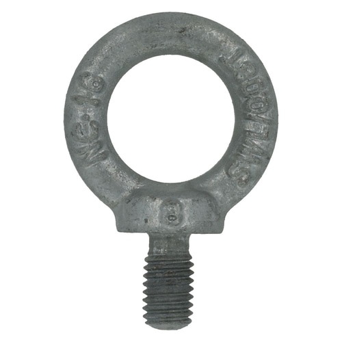 吊り下げ用のリングを持ったボルトです。重量物の吊り上げに用います。材質は鋼で耐食性向上のため、溶融亜鉛めっき(白っぽい色合い)がしてあります。 |