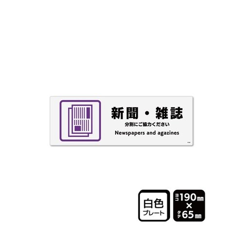 資源・ごみ分別用「新聞・雑誌」標識サインプレート。 |
