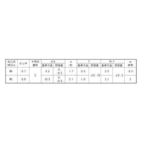 寸法(mm)d:M4 | 寸法(mm)L:80 | その他仕様:バインド小ねじ | 材質・仕上:鉄(または標準) | 材質・仕上:表面処理/クロメート…