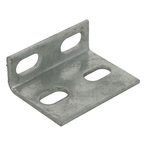 材質は鉄で溶融亜鉛めっき。Uボルト固定用アングルとして使用。組み合わせ部品はどぶめっき品を使用してください。 |