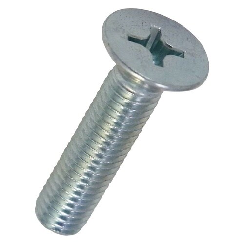 十字穴付きの皿頭小ねじです。部材に頭部を出さない為の座ぐり加工が必要です。材質は鋼で耐食性向上のため、ユニクロめっき(薄青っぽい色合い)がしてあります。