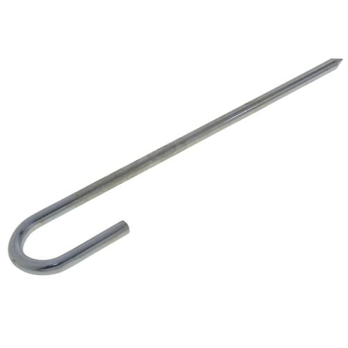 材質は鉄でユニクロめっき。地面にロープを押える時や、テントなどを固定する時に使用。 |