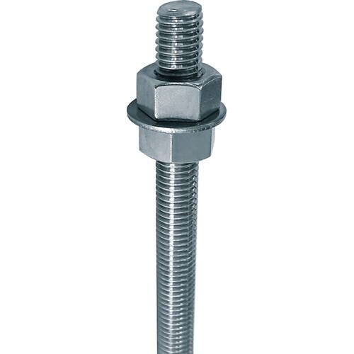 先端を斜め45度にカットした全ねじボルトで、ケミカルアンカーに回転させながら挿入します。ねじの山と谷が入り組んだ形で固着するので、しっかりと固定されます。 |