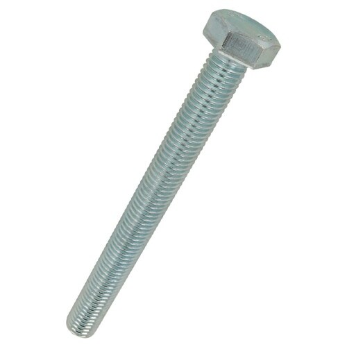 六角形状の頭部があり、胴の全体にねじが切ってあります。材質は鋼で耐食性向上のため、ユニクロめっき(薄青っぽい色合い)がしてあります。機械類の位置調整、締結用ねじです。生地に比べ耐食性があります。 |