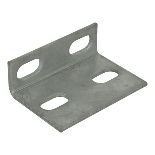 材質は鉄で溶融亜鉛めっき。Uボルト固定用アングルとして使用。組み合わせ部品はどぶめっき品を使用してください。