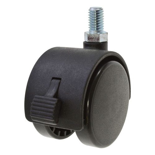 車輪がナイロンで、耐熱性、耐薬品性、耐食性、耐摩耗性に優れている。軽量。デザインキャスター(双輪タイプ)として使用。椅子、机などに。