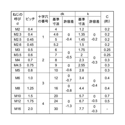 上面が平らで座面が円錐形の頭の形状です。皿小ねじは頭部も含めた全長が長さとなります。(一般的には首下部分の長さ。 |