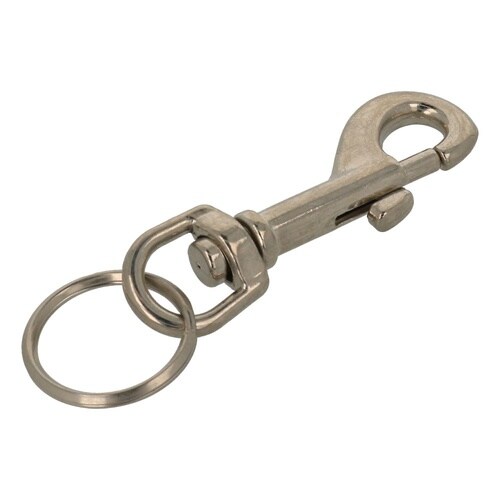 回転式。亜鉛ダイカスト製で、ニッケルめっき。 スナップ式になっているのでワンタッチで着脱ができる。チェーンの連結に使用。 |
