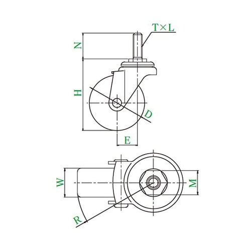 走行性、耐荷重を備えた標準的なねじ込み式キャスターです。旋回部の構造を二段構造にする事で、スムーズな旋回が可能になります。 |